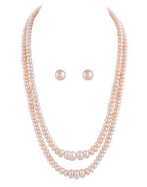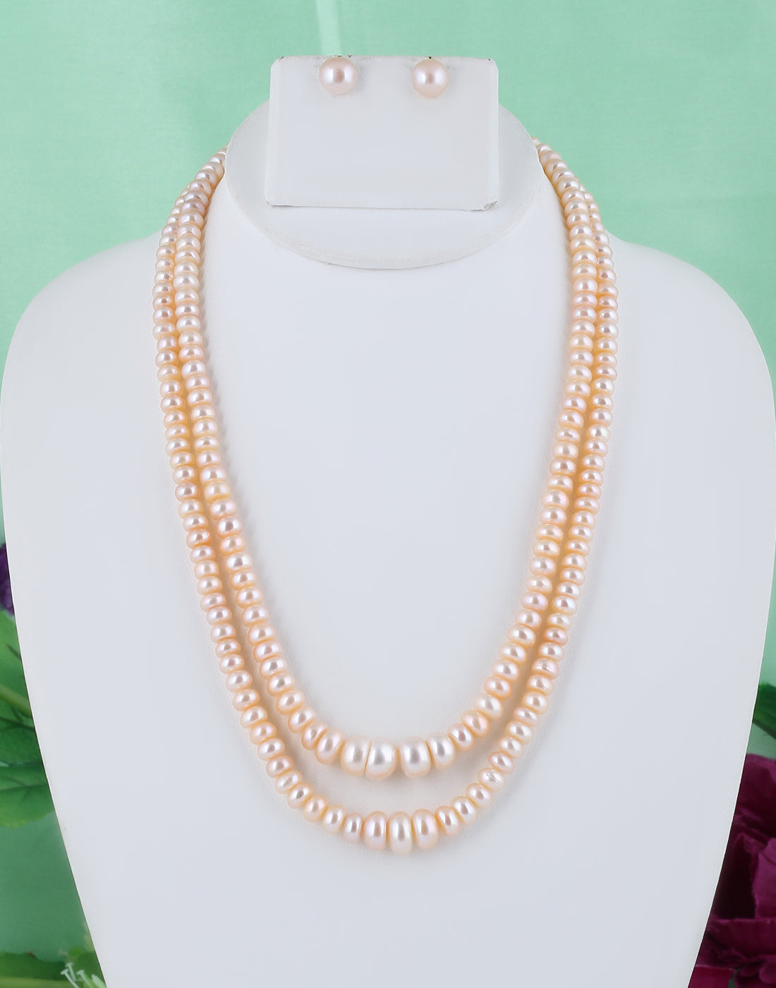 Real Natural Fresh Water Double Line Plain Pearl 5 To 12 MM Graduation Mala Set With Certificate(D.No NPS266)