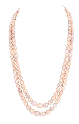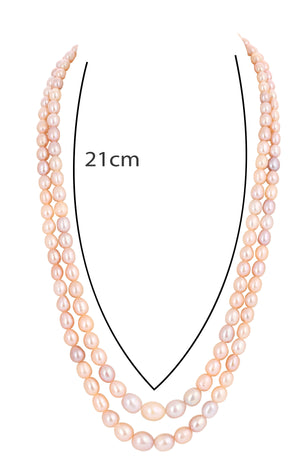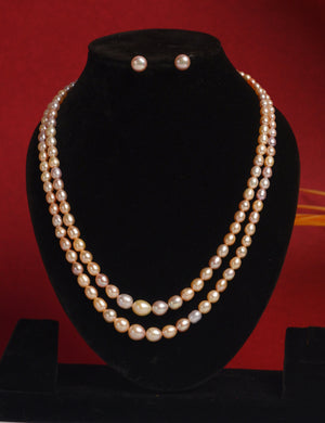 Real Natural Fresh Water Double Line Plain Pearl Mala Set With Certificate(D.No NPS312)