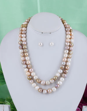 Crafted with high-quality craftsmanship, the set includes a stunning necklace, matching earrings, all designed to enhance any outfit—whether it’s for a special occasion or everyday wear. The soft, iridescent hues of the pearls range from classic whites to subtle pinks, adding a touch of warmth and refinement.