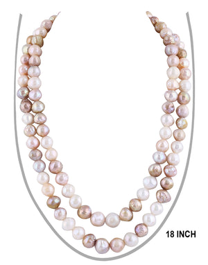 Real Natural Fresh Water Double Line Plain Pearls Mala Set 10 MM With Certificate(D.No NPS277)