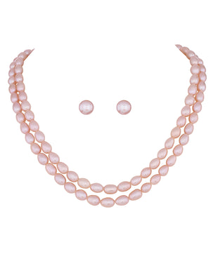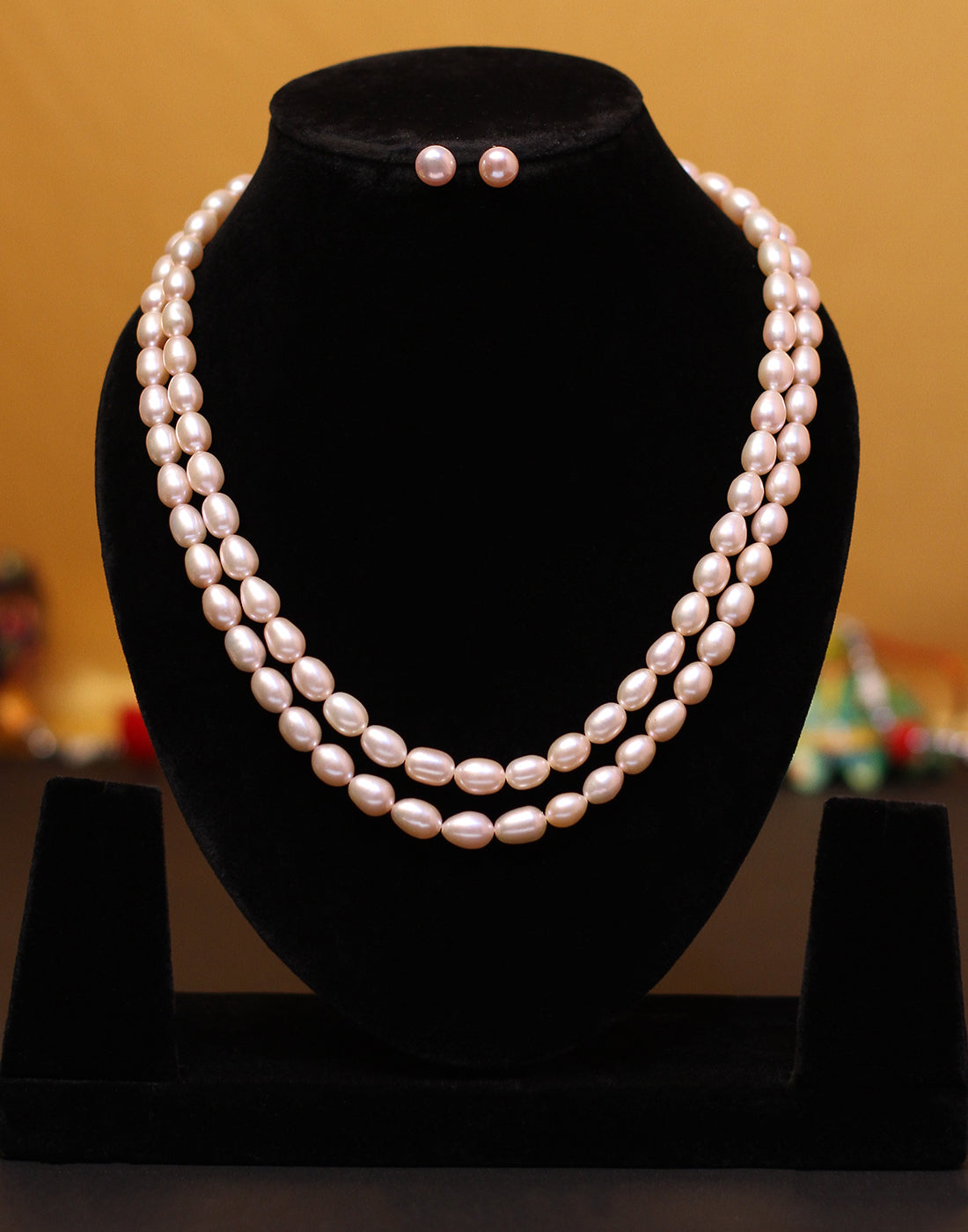 Real Natural Fresh Water Double Line Plain Pearls Mala Set 5 MM With Certificate(D.No NPS209)
