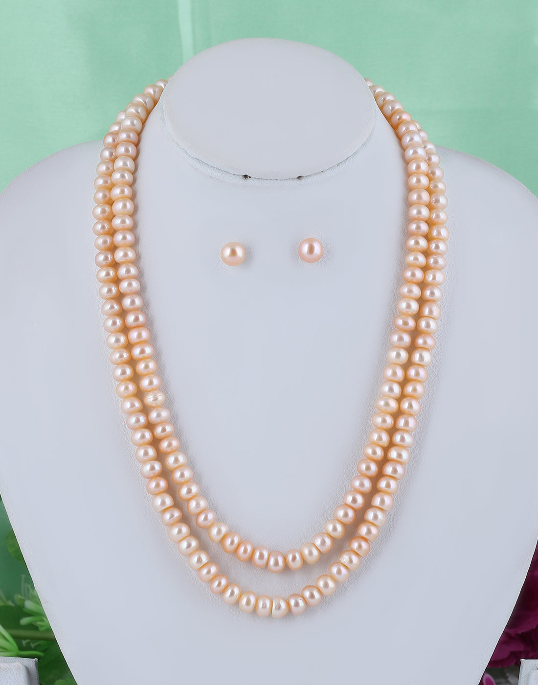Real Natural Fresh Water Double Line Plain Pearls Mala Set 8 MM With Certificate(D.No NPS285)