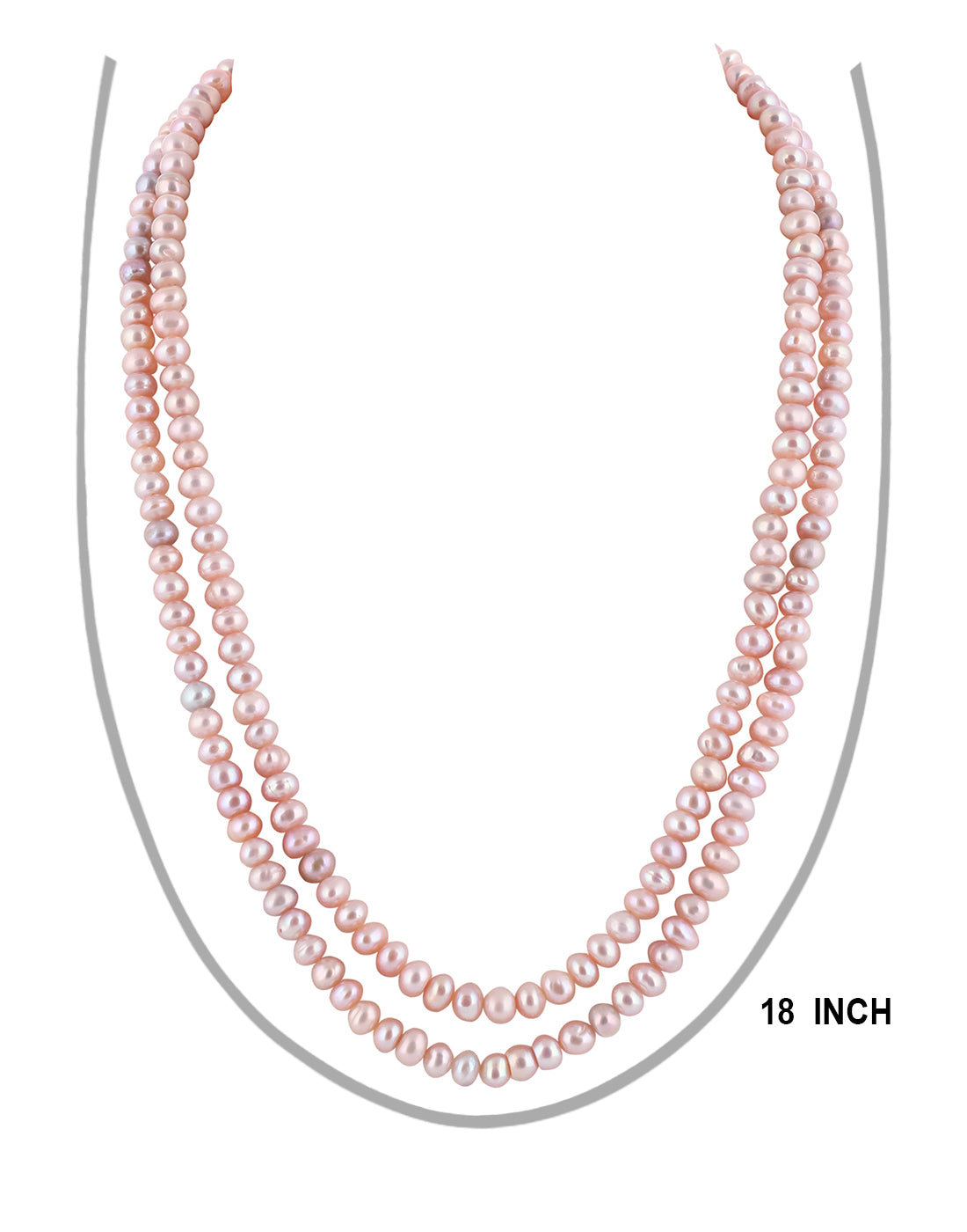 Real Natural Fresh Water Double Line Plain Rose Gold Colour Pearls Mala Set 5 MM With Certificate(D.No NPS232)