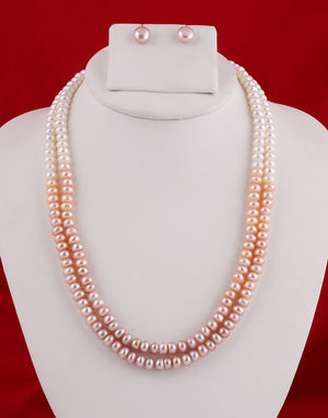 Real Natural Fresh Water Double Line Plain Shaded Pearls Mala Set 5 MM With Certificate(D.No NPS201)