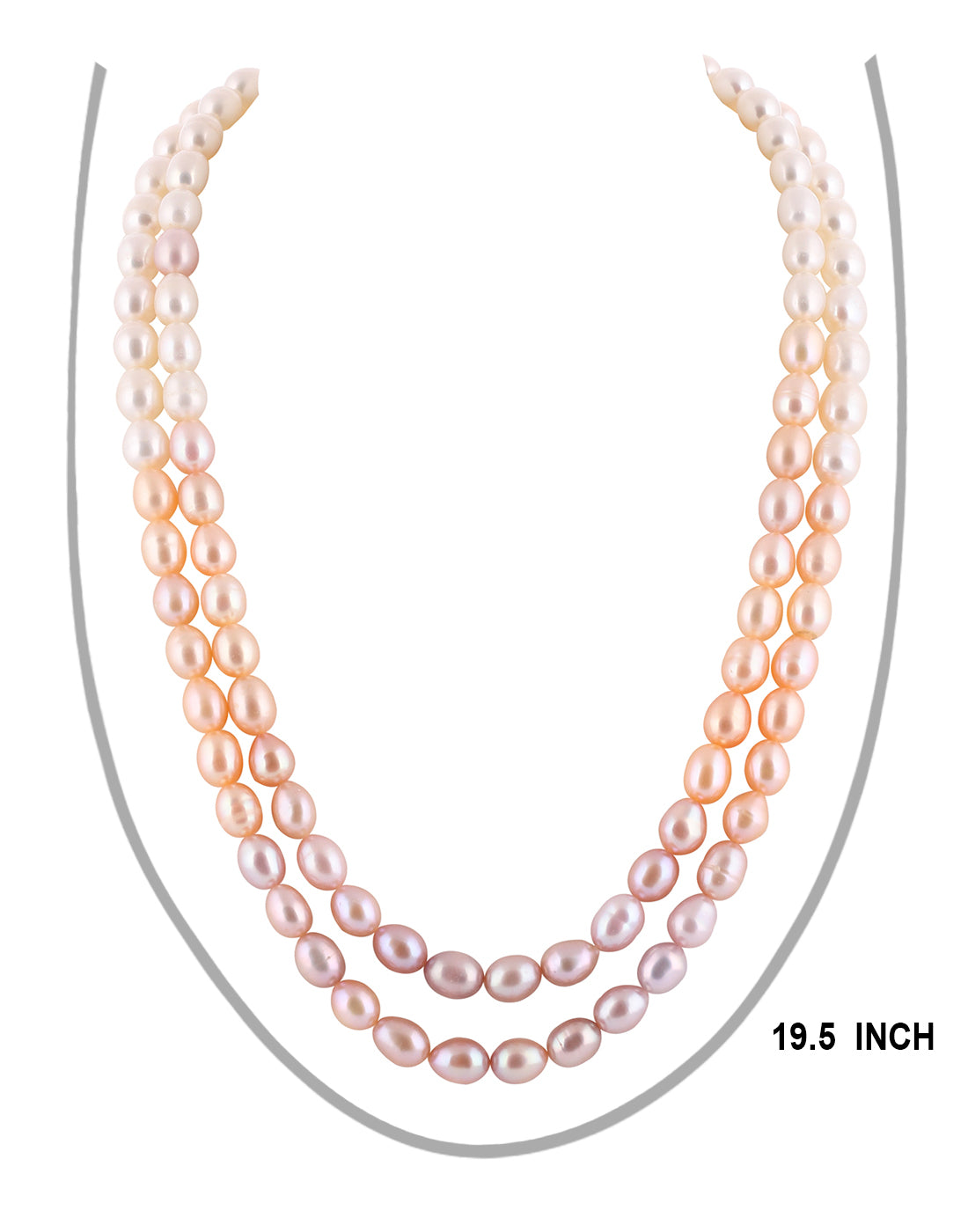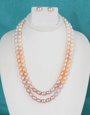 Real Natural Fresh Water Double Line Plain Shaded Pearls Mala Set 8 MM With Certificate(D.No NPS245)