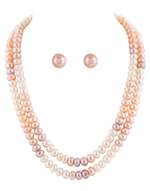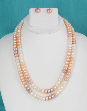 Real Natural Fresh Water Double Line Shaded Pearls Mala Set 8 To 9 MM With Certificate(D.No NPS240)