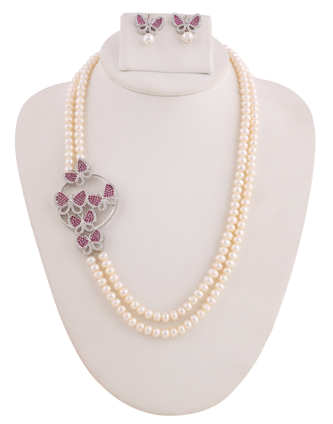 Real Natural Fresh Water Double String Pearl Set For Women With Certificate(D.No ADPRLS2006)