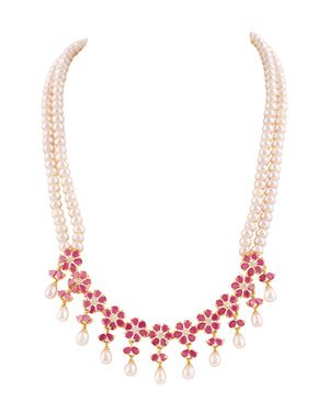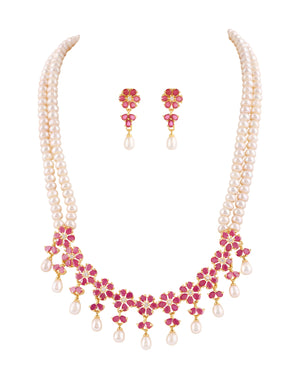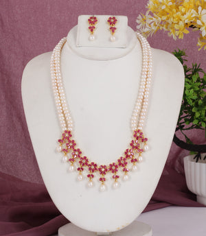 Real Natural Fresh Water Double String Pearl Set With Certificate For Women (D.No ADPRLS2051)