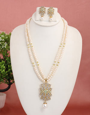 Real Natural Fresh Water Double String Pearl Set With Certificate(D.No ADPRLS1570)