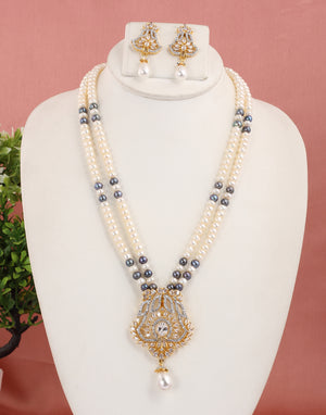 Real Natural Fresh Water Double String Pearl Set With Certificate(D.No ADPRLS1608)