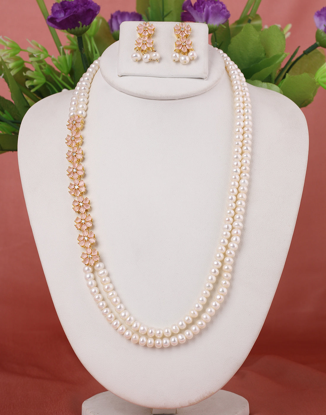 Real Natural Fresh Water Double String Pearl Set With Certificate(D.No ADPRLS234)