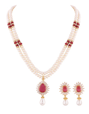 Real Natural Fresh Water Double String Pearl Set With Certificate(D.No ADPRLS457)