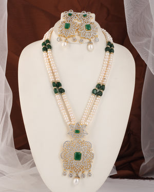 - Pendant Set Information - Made With Micro Size AD/Zirkon Stones Studded In It With Base Of Silver N Alloy Metal