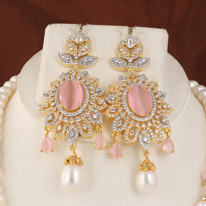 - Pendant Set Information - Made With Micro Size AD/Zirkon Stones Studded In It With Base Of Silver N Alloy Metal