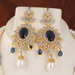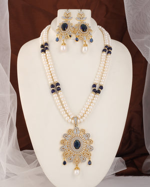 - Pendant Set Information - Made With Micro Size AD/Zirkon Stones Studded In It With Base Of Silver N Alloy Metal