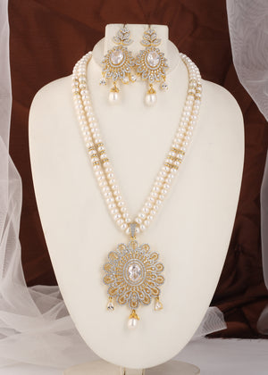 - Pendant Set Information - Made With Micro Size AD/Zirkon Stones Studded In It With Base Of Silver N Alloy Metal