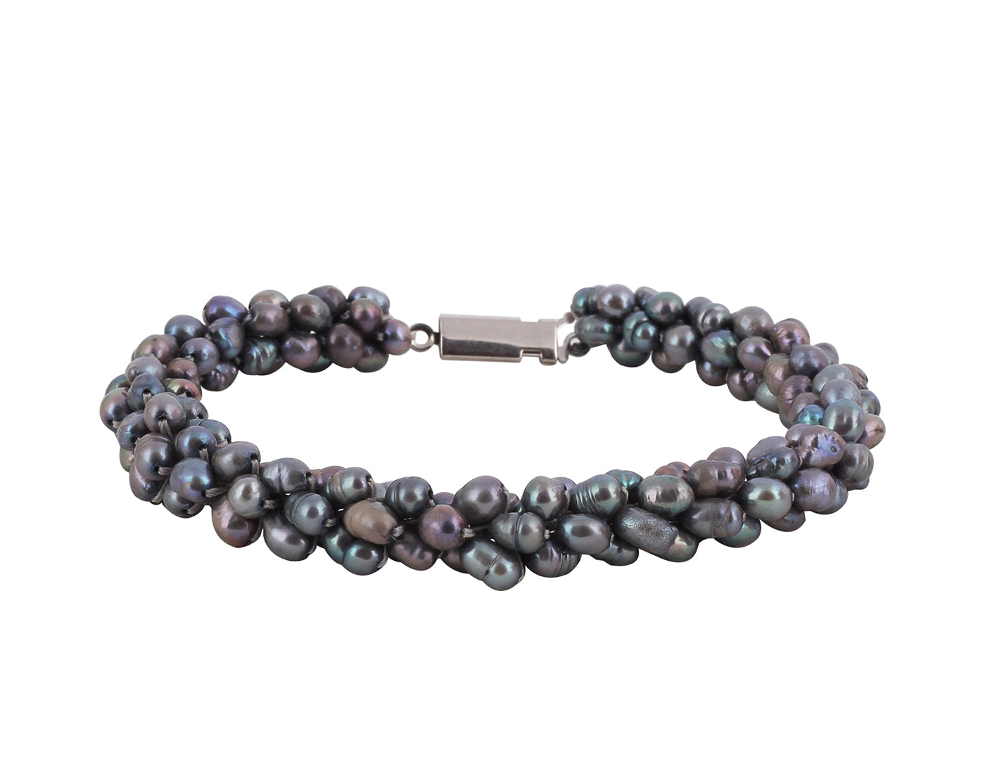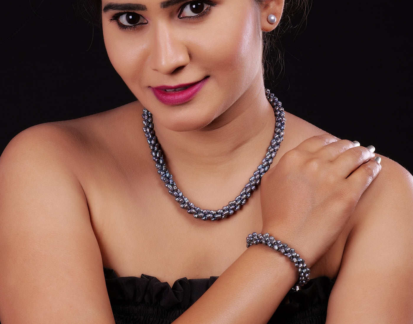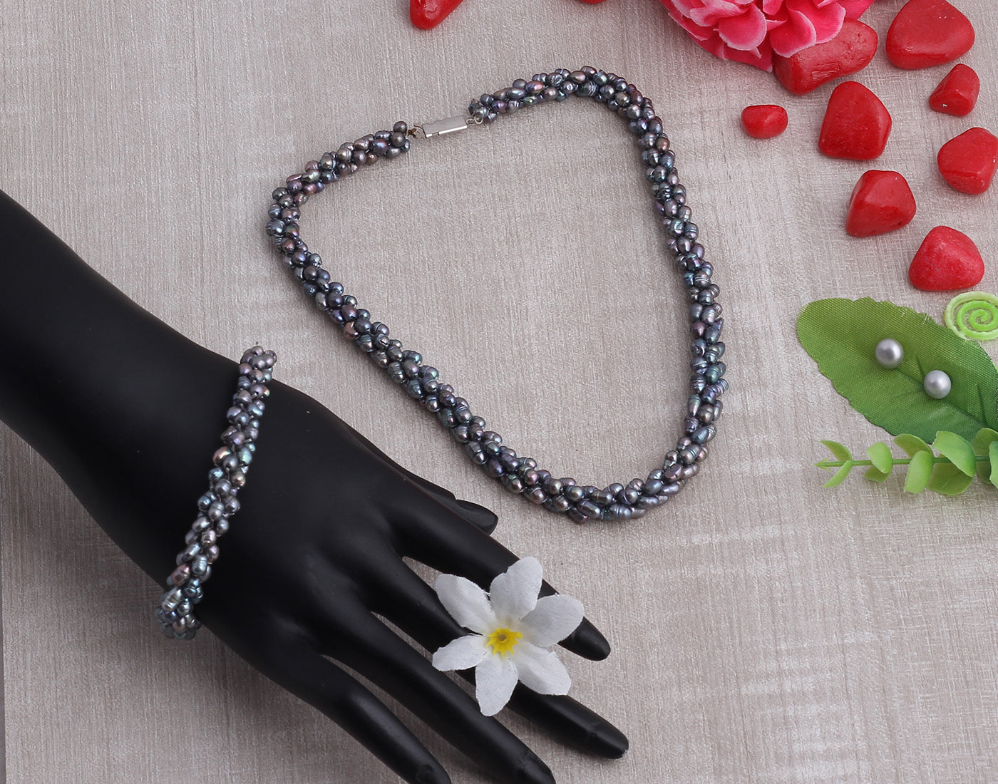 Real Natural Fresh Water Grey Pearls Mala n Bracelet With Certificate(D.No COMBO102)
