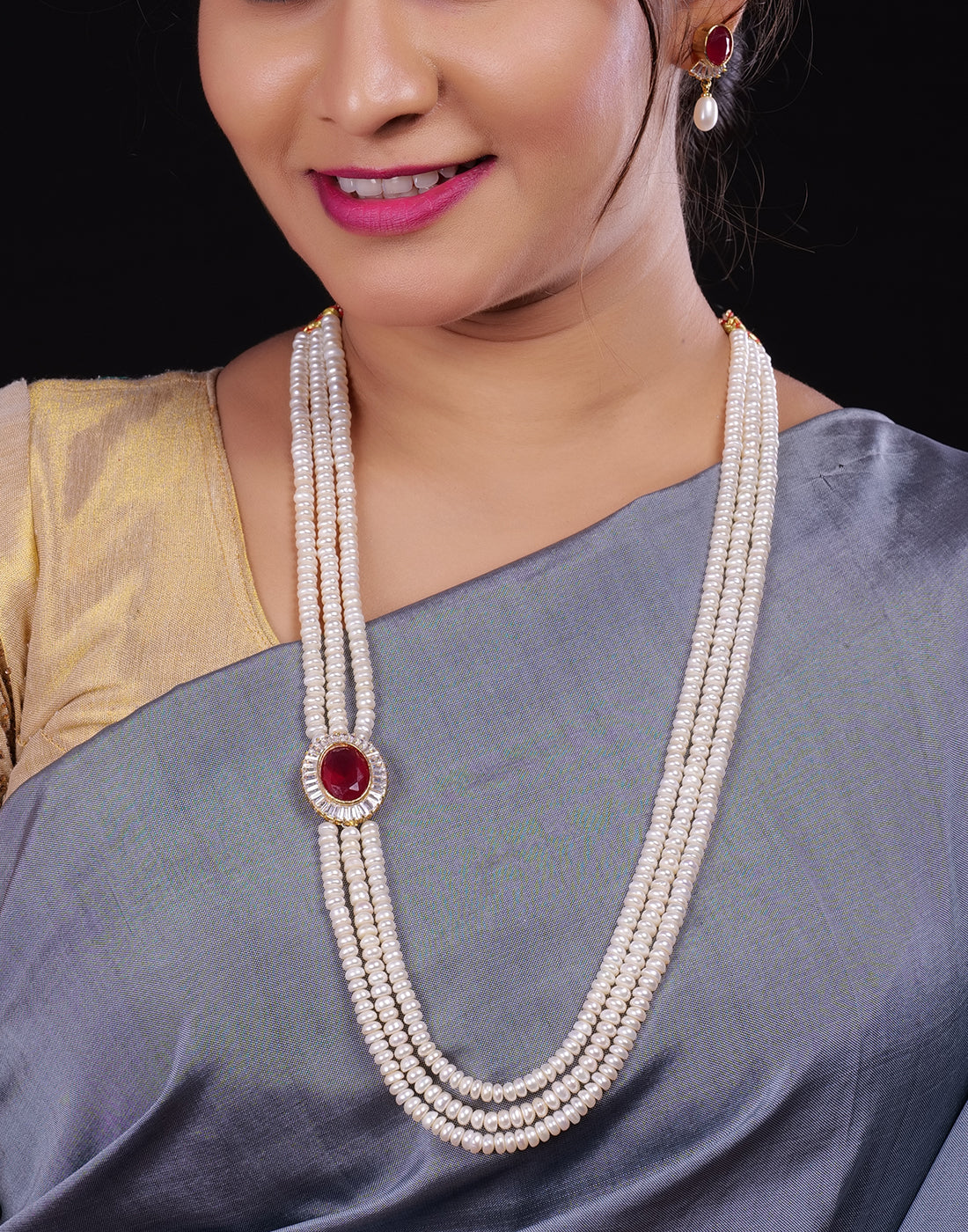 Real Natural Fresh Water Pearl Set With Certificate(D.No ADPRLS937)