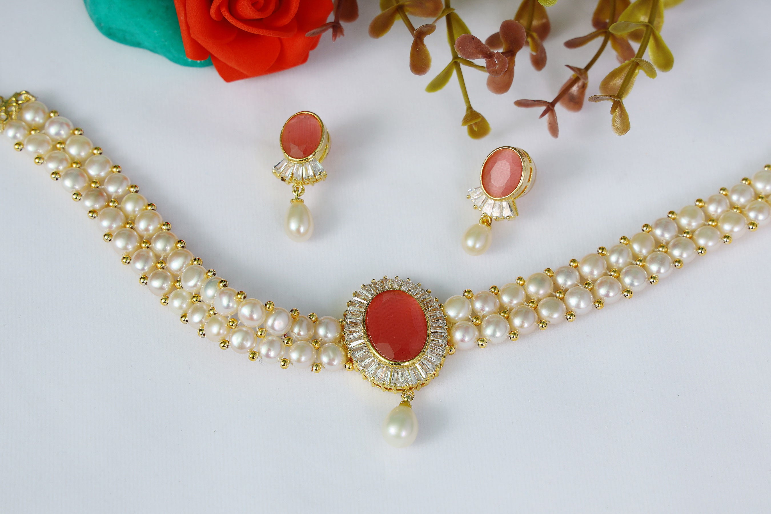 Real Natural Fresh Water Pearls Choker Set With Certificate(D.No CKR114)