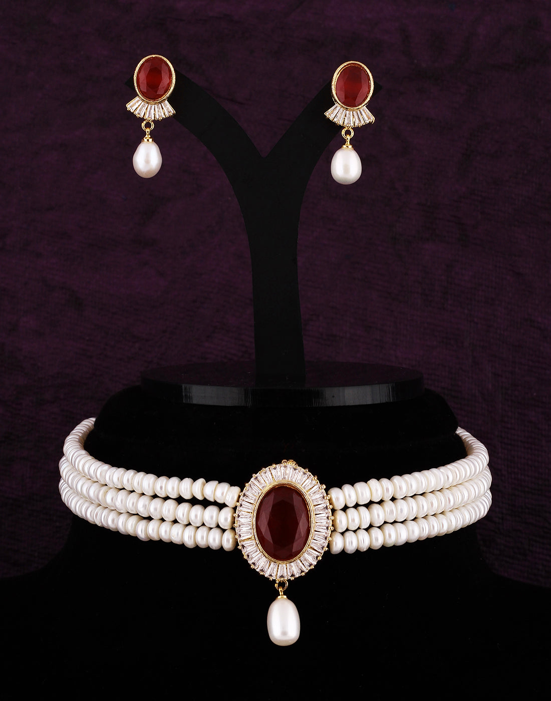 Real Natural Fresh Water Pearls Choker Set With Certificate(D.No CKR187)