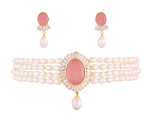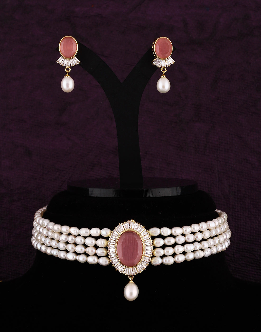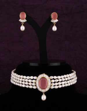 Real Natural Fresh Water Pearls Choker Set With Certificate(D.No CKR192)
