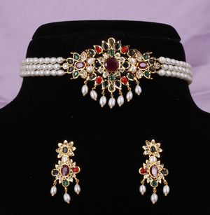 Real Natural Fresh Water Pearls Choker Set With Certificate(D.No CKR540)