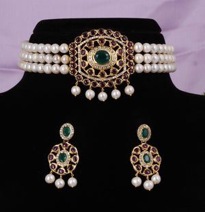 Real Natural Fresh Water Pearls Choker Set With Certificate(D.No CKR551)