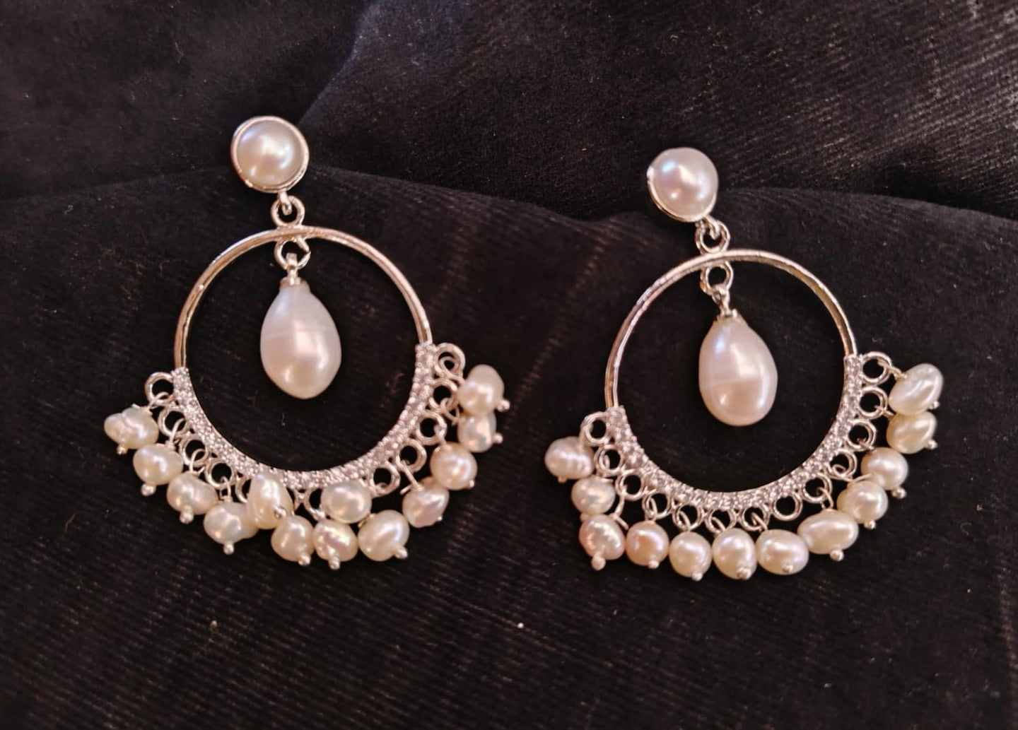 Real Natural Fresh Water Pearls Chand Bali Hangings (D.No PTOP127)