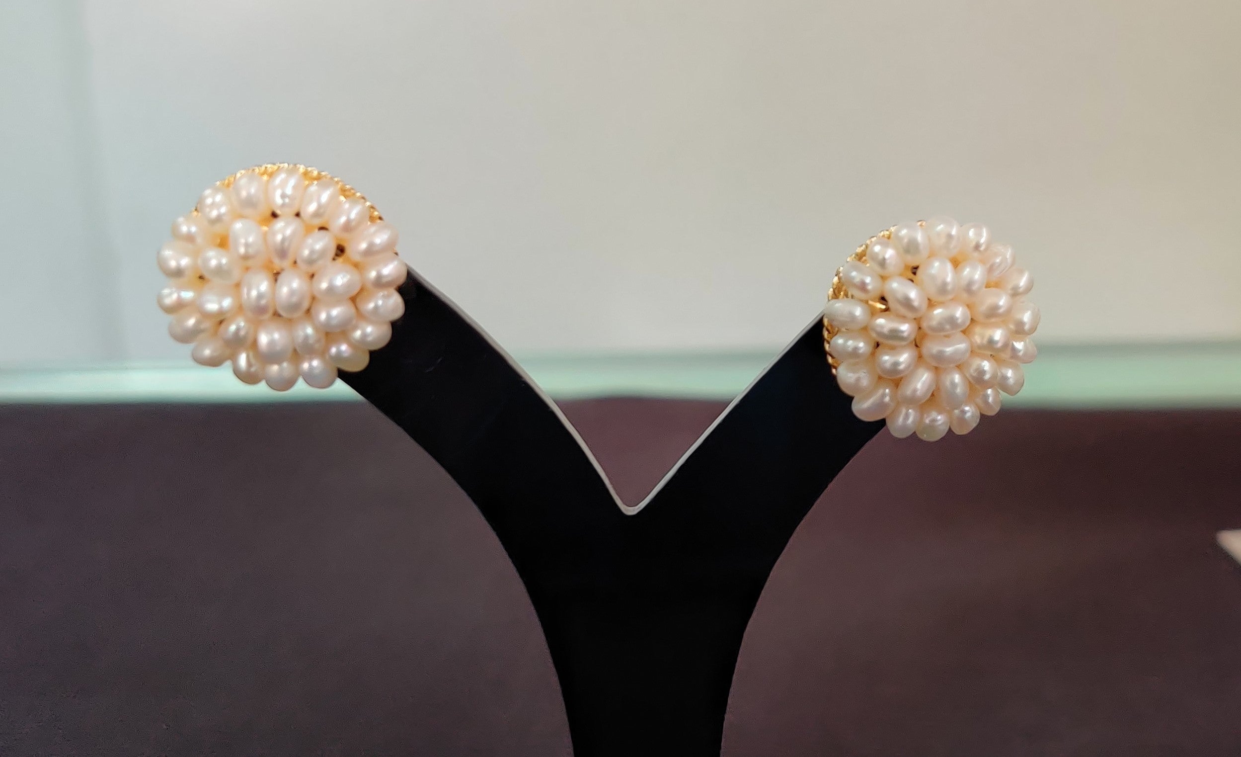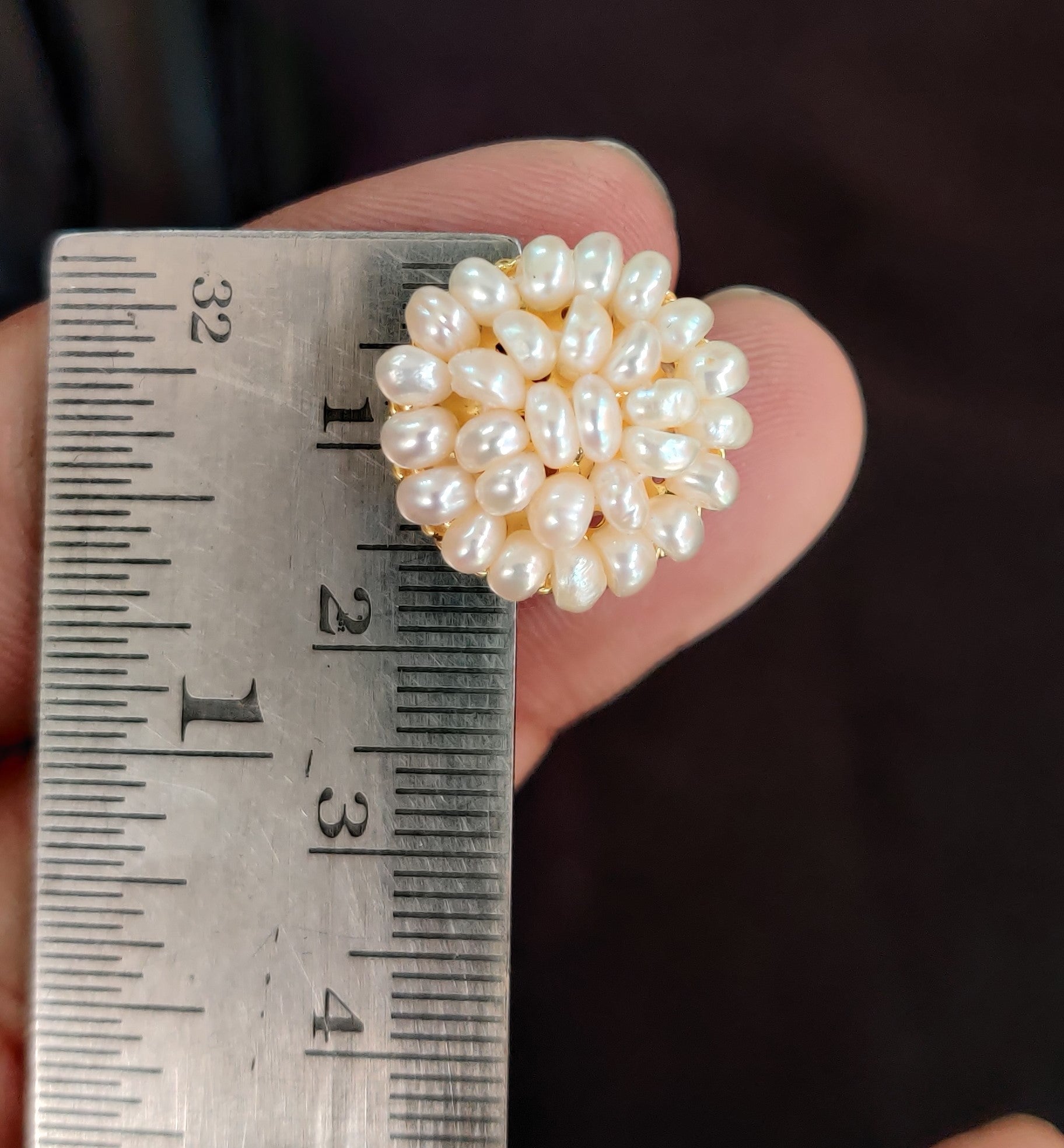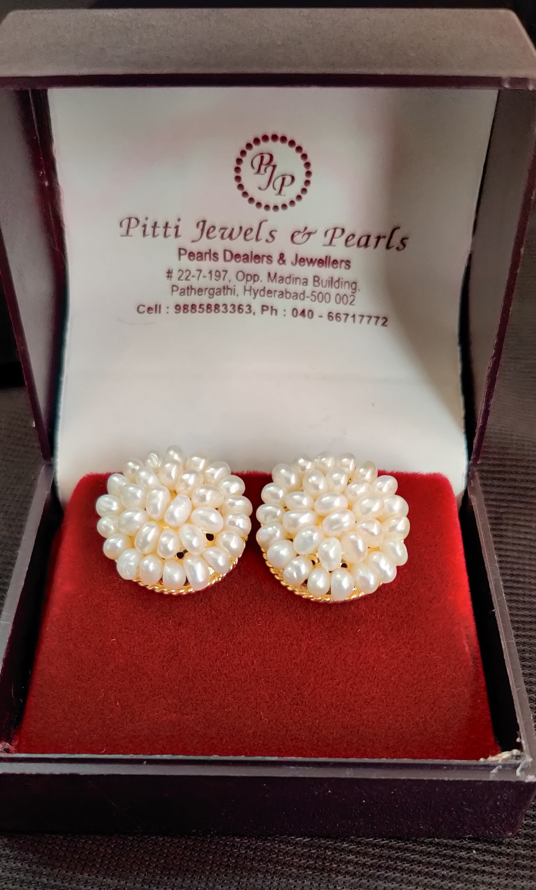 Real Natural Fresh Water Pearls Medium Size Round Studs Tops(D.No PTOP111)