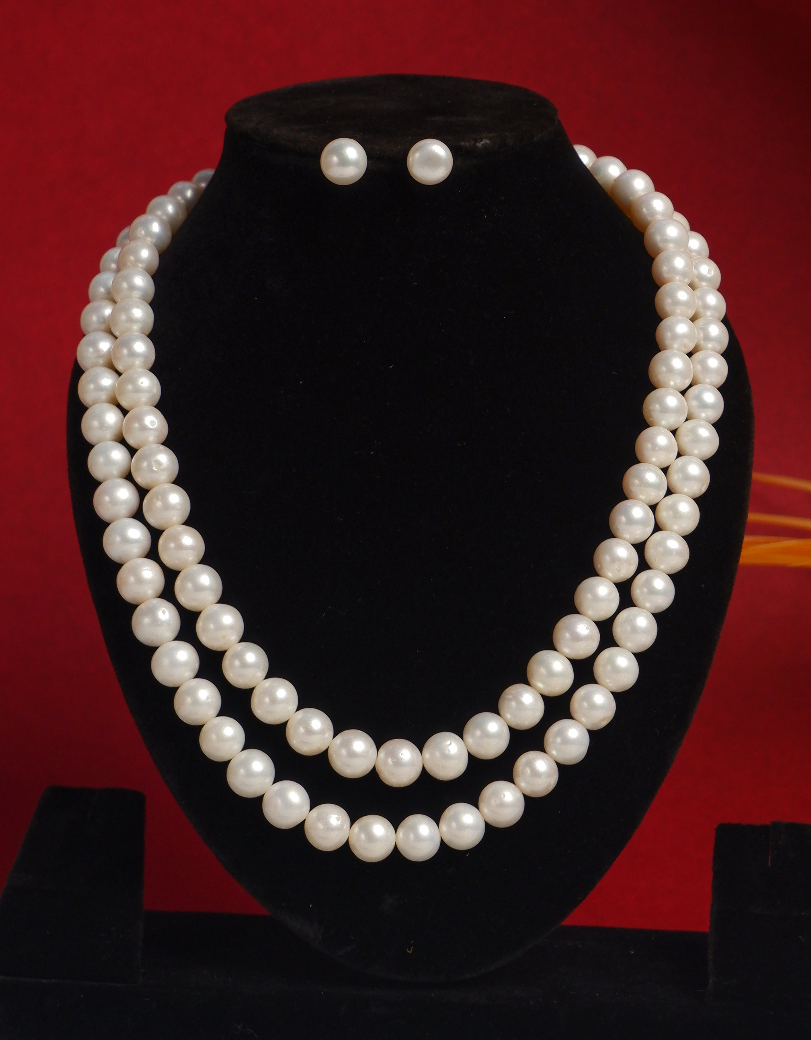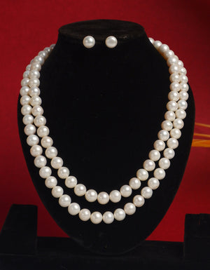 Real Natural Fresh Water Plain 10 MM Round Pearl Mala Set With Certificate(D.No NPS331)