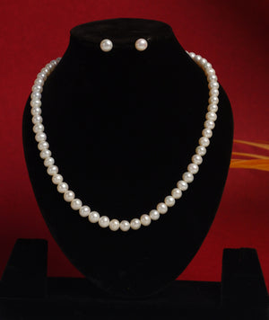 Real Natural Fresh Water Plain 8 MM Round Pearl Mala Set With Certificate(D.No NPS328)