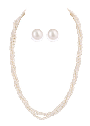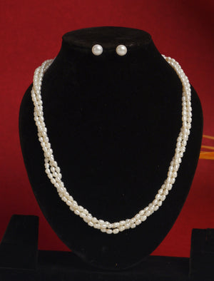 Real Natural Fresh Water 3 Lines Plain Pearl Mala Set With Certificate(D.No NPS299)