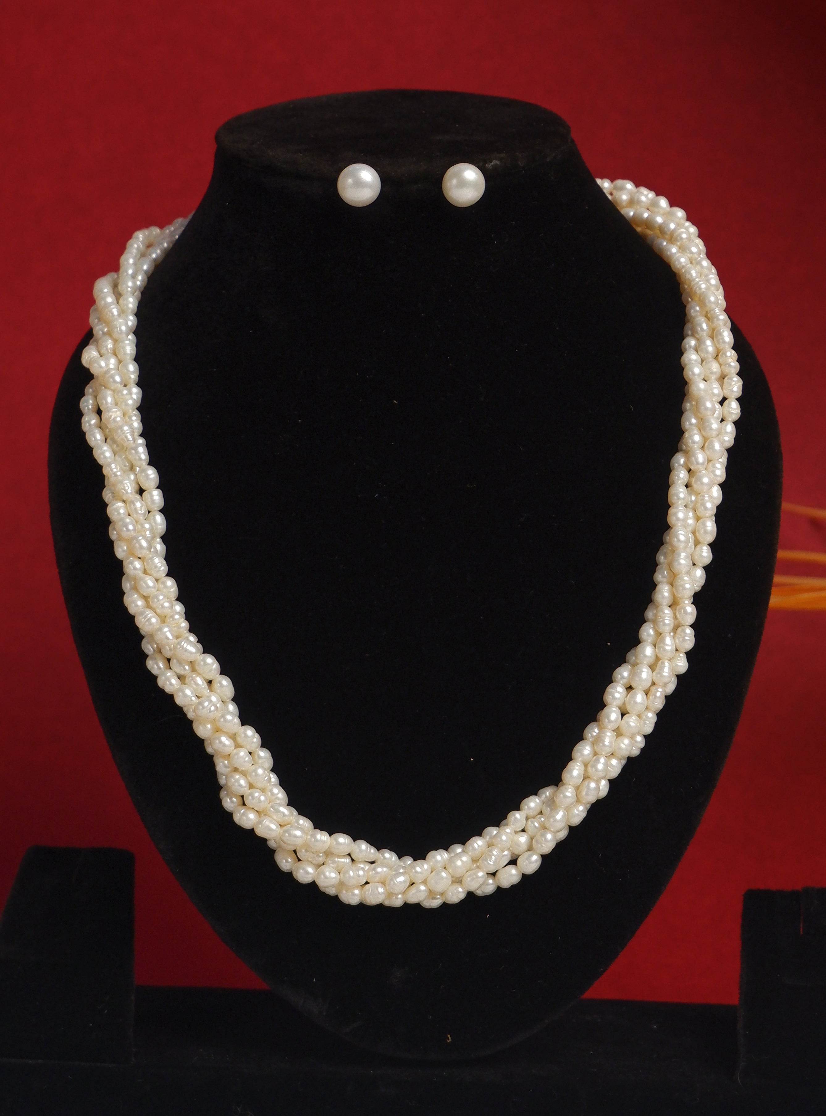 Real Natural Fresh Water Plain 5 Lines Pearl Mala Set With Certificate(D.No NPS300)