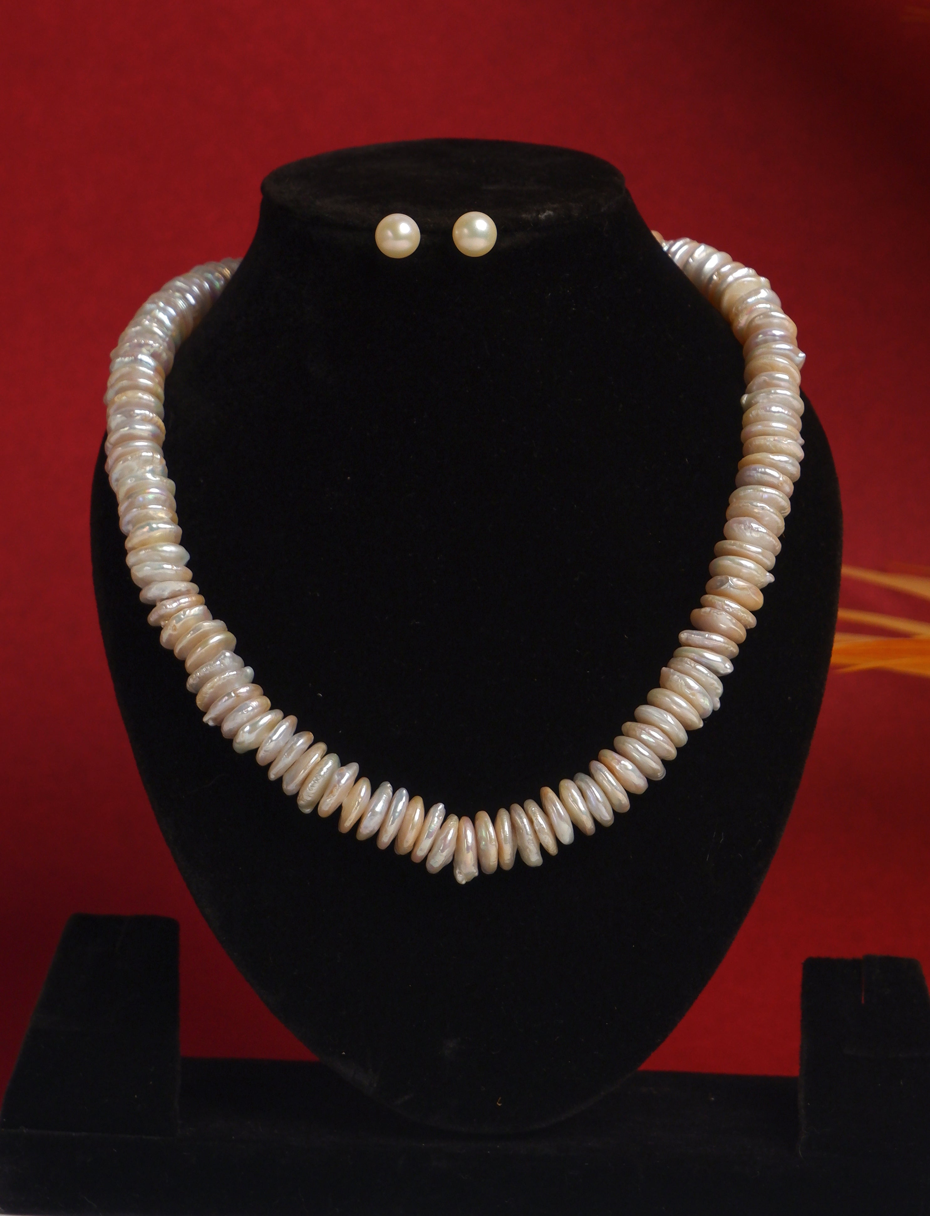 Real Natural Fresh Water Plain Wheel Shaped Pearl Mala Set With Certificate(D.No NPS302)