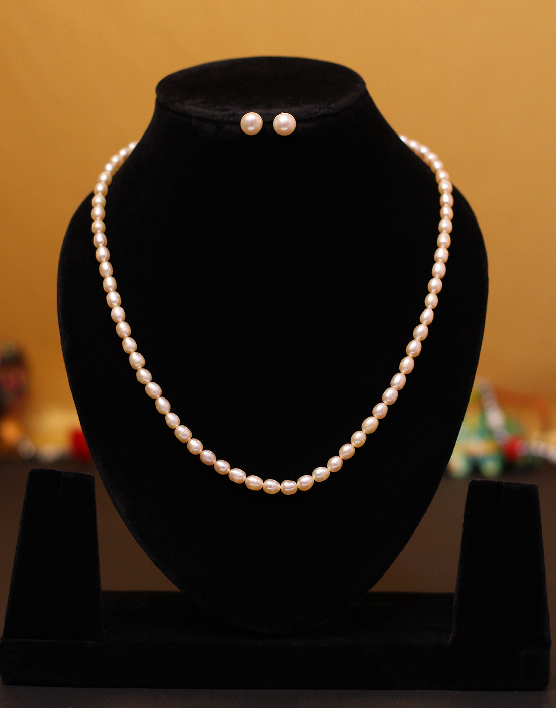 Real Natural Fresh Water Single Line Pearls Mala Set 5 MM With Cert.No NPS128)