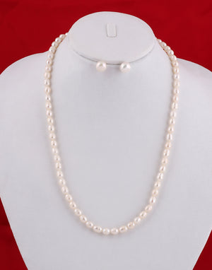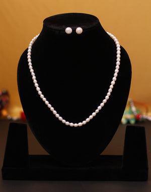 Real Natural Fresh Water Single Line Pearls Mala Set 5 MM With Certificate(D.No NPS134A)