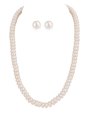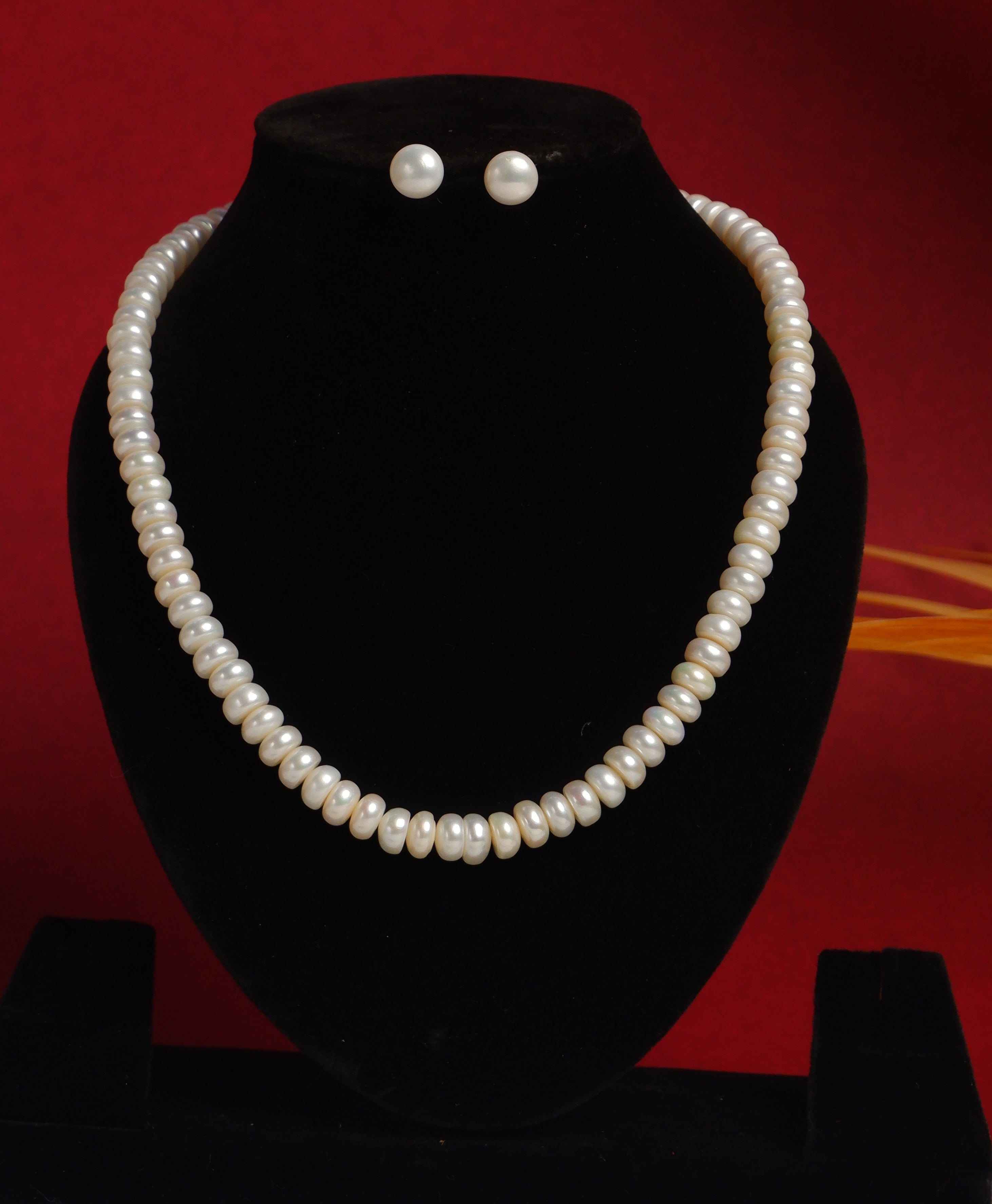 Real Natural Fresh Water Single Line Plain 10 MM Pearl Mala Set With Certificate(D.No NPS321)