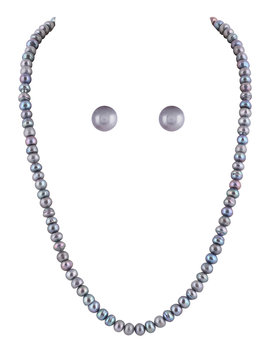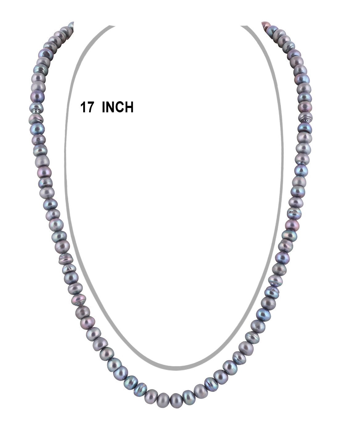 Real Natural Fresh Water Single Line Plain Grey peacock Shaded Colour Pearls Mala Set 5 MM With Certificate(D.No NPS241)