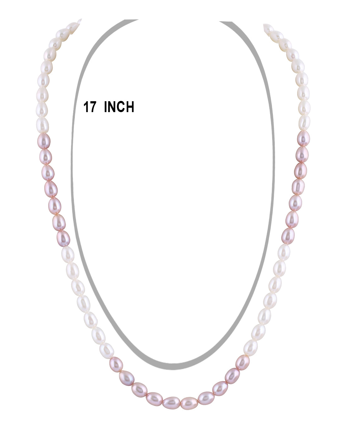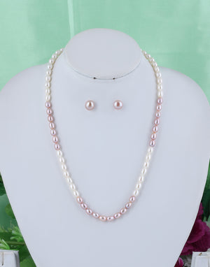 Real Natural Fresh Water Single Line Plain Oval Shaped Pearls Mala Set 5 MM With Certificate(D.No NPS271)