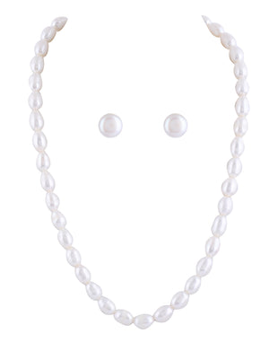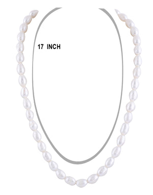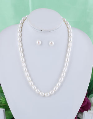 Real Natural Fresh Water Single Line Plain Oval Shaped Pearls Mala Set 8 MM With Certificate(D.No NPS274)