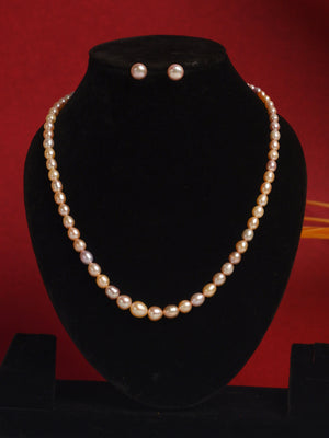 Real Natural Fresh Water Single Line Plain Pearl Mala Set With Certificate(D.No NPS311)