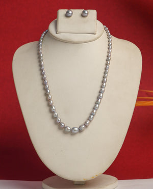 Real Natural Fresh Water Single Line Plain Pearl Mala Set With Certificate(D.No NPS313)