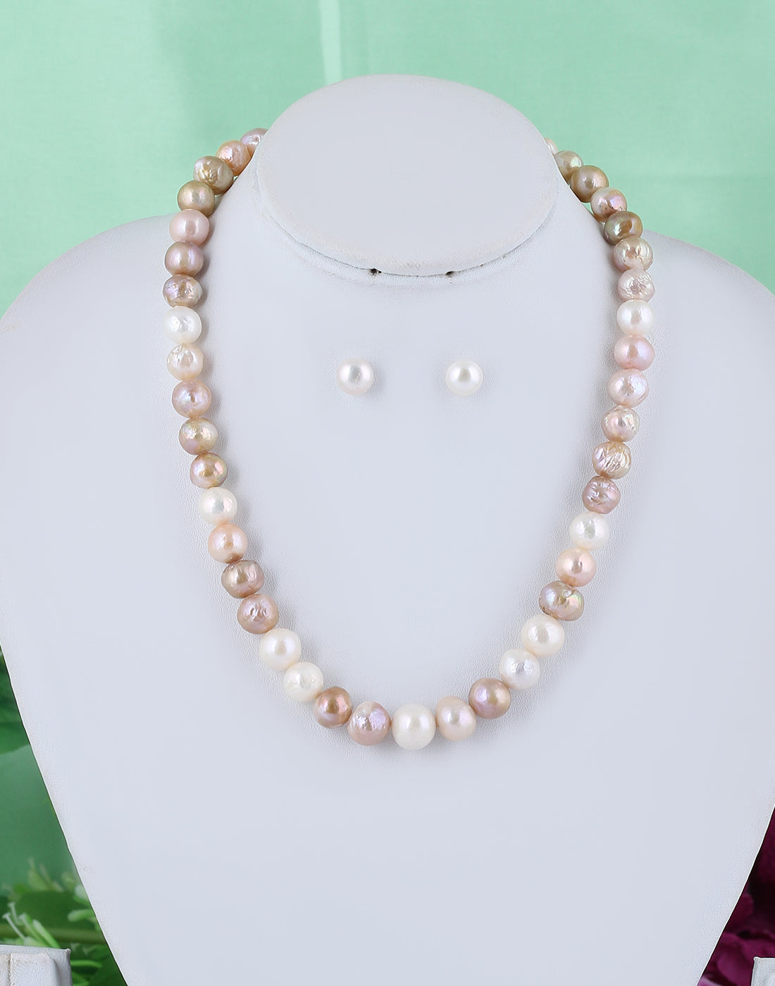 Crafted with high-quality craftsmanship, the set includes a stunning necklace, matching earrings, all designed to enhance any outfit—whether it’s for a special occasion or everyday wear. The soft, iridescent hues of the pearls range from classic whites to subtle pinks, adding a touch of warmth and refinement.