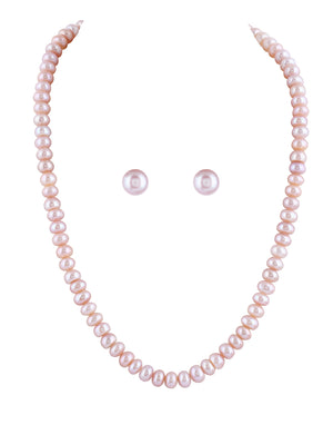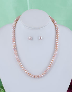 Real Natural Fresh Water Single Line Plain Pearls Mala Set 8 MM With Certificate(D.No NPS282)