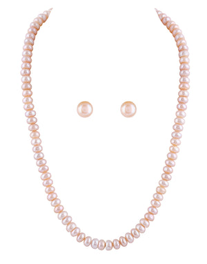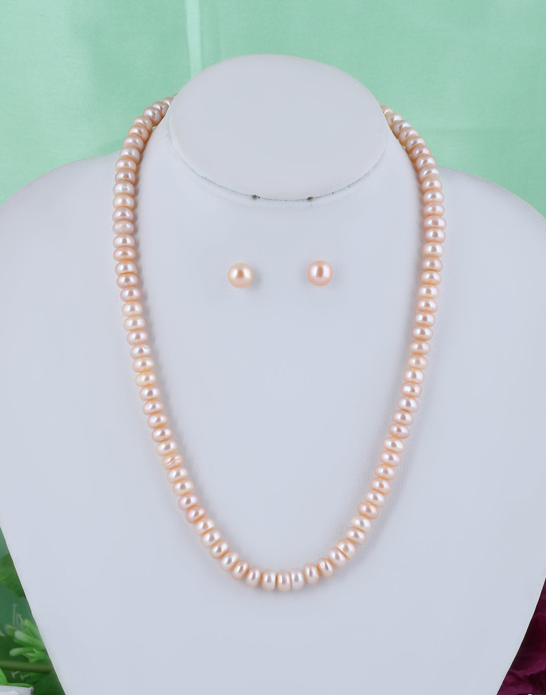 Real Natural Fresh Water Single Line Plain Pearls Mala Set 8 MM With Certificate(D.No NPS284)