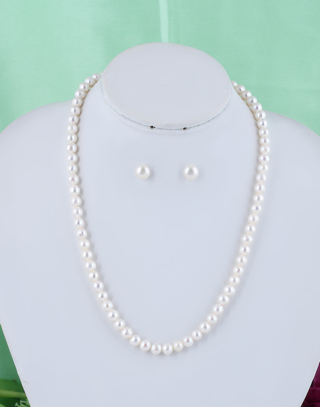 Real Natural Fresh Water Single Line Plain Round Pearls 5 MM Mala Set With Certificate(D.No NPS296)