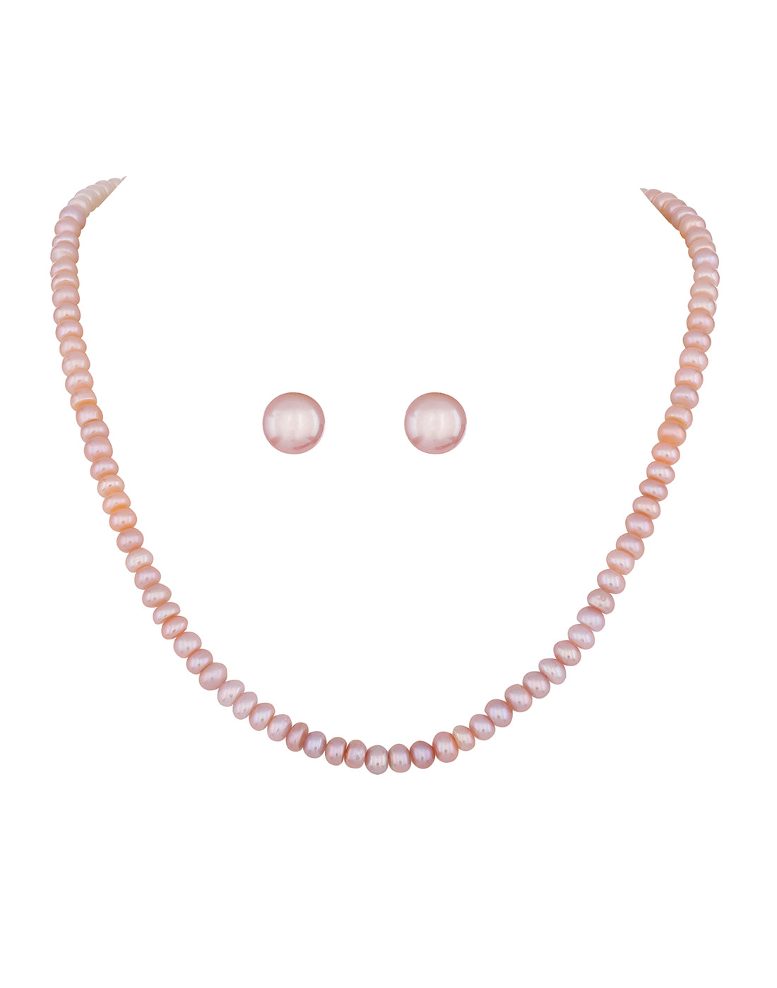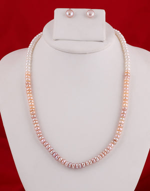 Real Natural Fresh Water Single Line Plain Shaded Pearls Mala Set 5 MM With Certificate(D.No NPS200)