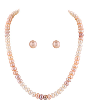Real Natural Fresh Water Single Line Shaded Pearls Mala Set 8 To 9 MM With Certificate(D.No NPS239)
