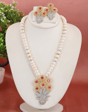 Real Natural Fresh Water Single String Pearl Set With Certificate(D.No ADPRLS1629)