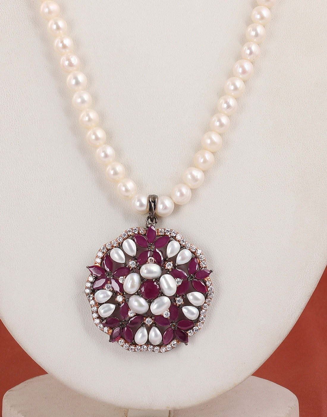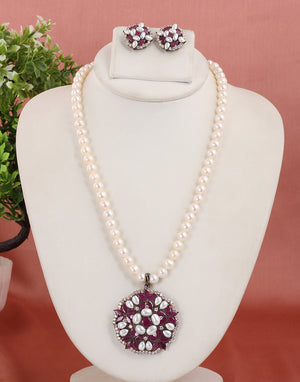 Real Natural Fresh Water Single String Pearl Set With Certificate(D.No ADPRLS1649)